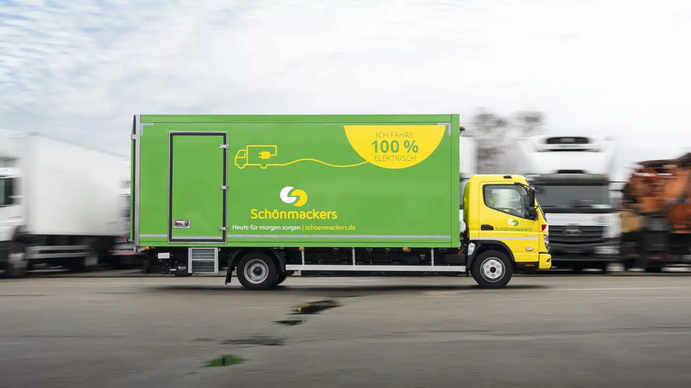 „Heute für morgen sorgen“, der Slogan der Schönmackers Umweltdienste GmbH & Co. KG aus Kempen könnte nicht passender sein als Beschriftung für den neuen Next Generation eCanter 7C18e, den das Entsorgungs- und Recyclingunternehmen Mitte Februar übernommen hat. Schönmackers versteht sich als einer der führenden Dienstleister für nachhaltige Entsorgungslösungen in Nordrhein-Westfalen und betreut mehr als 50 Kommunen mit insgesamt über einer Million Einwohnern. Dafür, dass Hausmüll einsammeln, die Biotonne leeren, Sperrmüllabfuhr, Wertstoffrecycling oder auch fach- und umweltgerechte Sondermüllentsorgung reibungslos funktionieren, engagieren sich bei Schönmackers 1.600 Mitarbeiter an 23 Standorten.