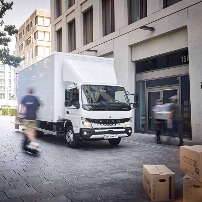 No problem for the FUSO Canter. Equipped with a lightweight box, refrigerated body, box with tail lift, curtain sider or curtainsider body, it reliably joins the fray - because as a compact, manoeuvrable and comfortable light truck with practical equipment, it is made for city logistics.
